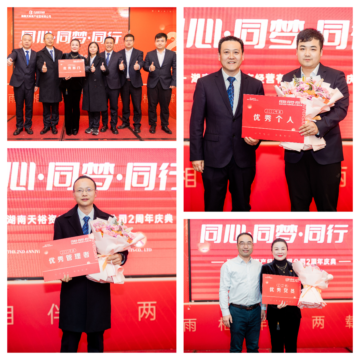 2023年3月1日下午,以“同心·同夢·同行”為主題,湖南天裕資產(chǎn)經(jīng)營有限公司舉行2周年慶典暨2022年度工作總結(jié)表彰大會,集團黨委委員、副總經(jīng)理、天裕資產(chǎn)董事長王衛(wèi)剛,集團副總經(jīng)理、天裕資產(chǎn)董事徐蓓,集團副總經(jīng)理、天裕資產(chǎn)董事曾萍,天裕公司全體員工參會,慶典還邀請了資產(chǎn)行業(yè)專家和精英。